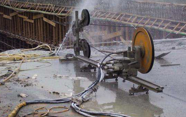 混凝土切開是指選用液壓墻鋸機、電動碟鋸機、水鉆或許馬路切開機等東西對混凝土構(gòu)件、墻體、路面等進行切開的施工技能,它具有切開才能強,靜力無損,功率高,選用水冷卻,無施工粉塵等特色 :切開撤除:繩鋸切開是金剛石繩子在液壓馬達驅(qū)動下繞被切開物高速跋涉研磨然后完結(jié)切開作業(yè)。  運用繩鋸設(shè)備對混凝土切開拆 除···